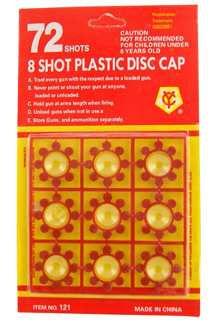 Kapiszony są osadzone w plastikowym pierścieniu który po oderwaniu z blistra wkładamy do magazynka z pistoletu 8 strzałowego. Kapiszony (spłonka) jest stosunkowo głośna.