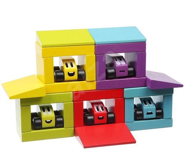 Pięknie wykonane, drewniane samochodziki. W zestawie są drewniane klocki, dzięki którym do każdego autka można zbudować garaż w tym samym kolorze. Klocki można układać na wiele sposobów, zbudujemy z nich tory wyścigowe, wieże i co tylko podpowie nam wyobraźnia! Produkt jest pomalowany bezpiecznymi farbami wodnymi.