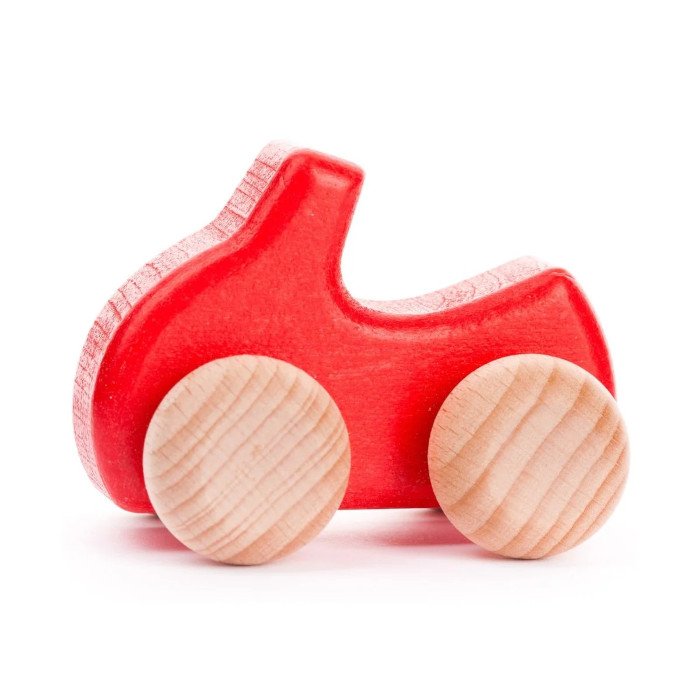Drewniane autko cabrio od firmy Bajo, które nadaje się w sam raz dla małych rączek.