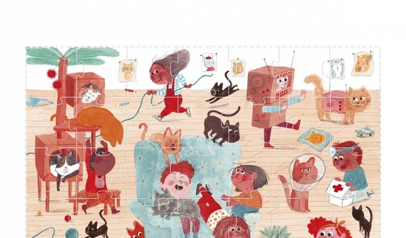Autorką ilustracji jest Marta Altés. Układanie puzzli uczy logicznego myślenia, ćwiczy pamięć i koordynację ręka-oko.