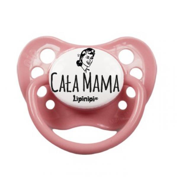 Smoczek dla niemowlaka z napisem Cała Mama! Pastelowo różowa kolorystyka w sam raz dla córeczki. Dostępne dwa rozmiary smoczków: od 0 do 6 m oraz od 6 do 18 miesięcy.