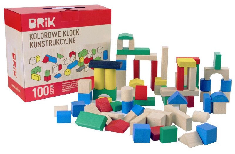Klocki drewniane dla rocznego dziecka - kolorowe 100 sztuk - Brik
