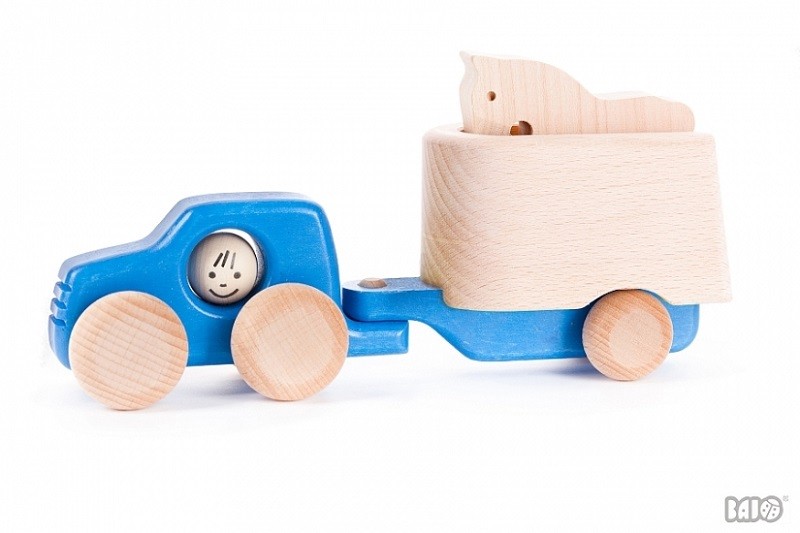 - Dostępna różna kolorystyka samochodu, przyczepa oraz konik są w kolorze naturalnego drewna.