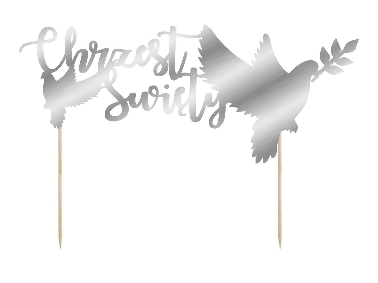 Topper Chrzest Święty, srebrny metaliczny