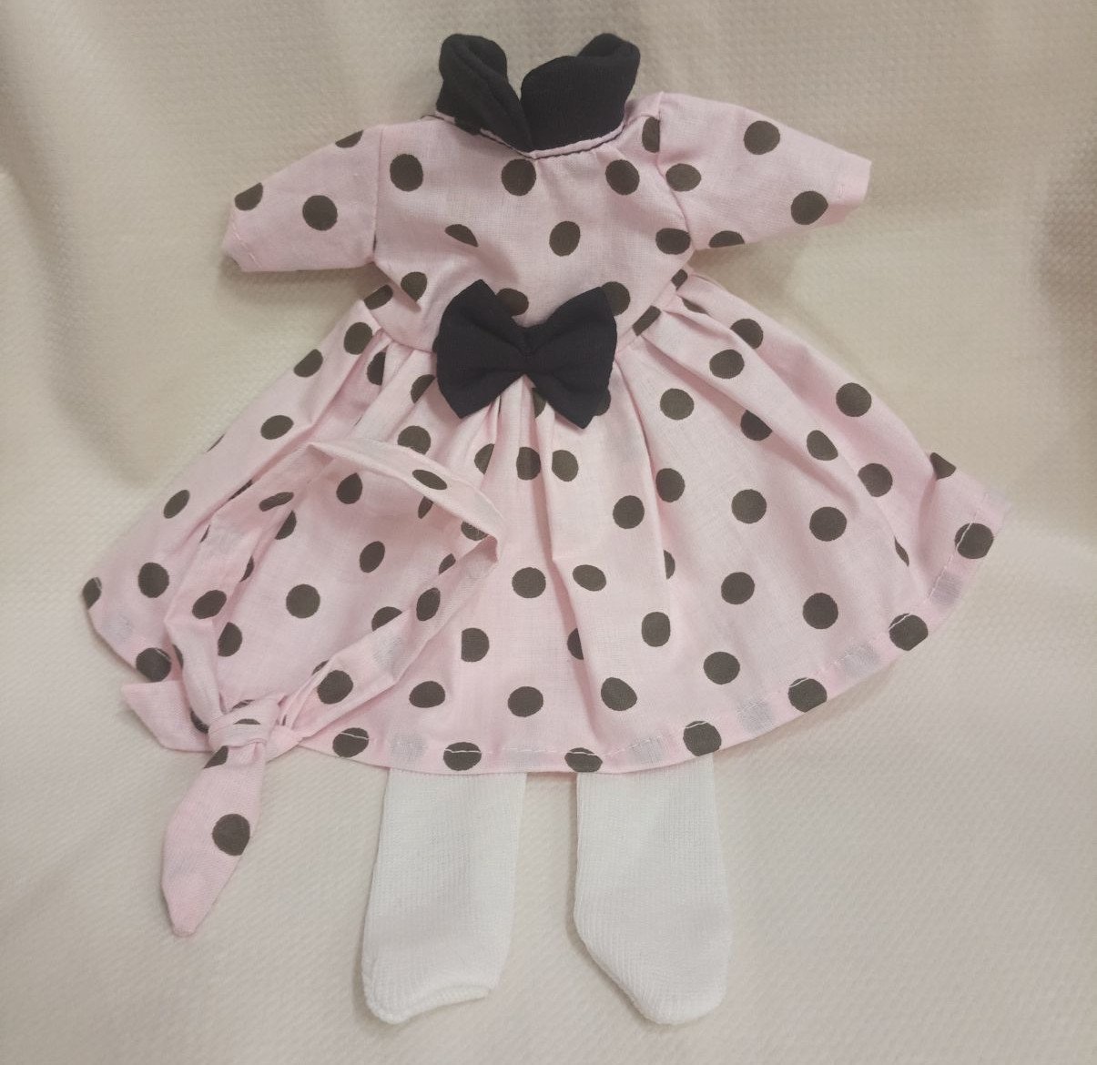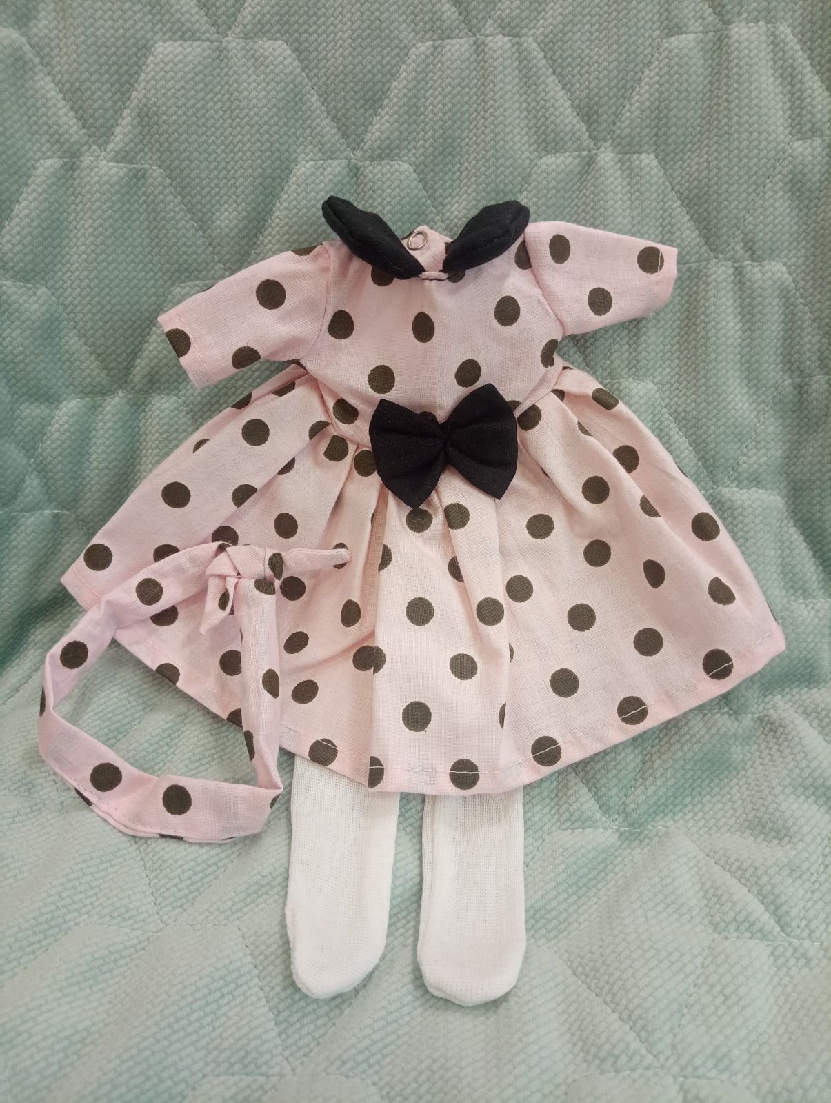 Zestaw dla lalki, sukienka w groszki