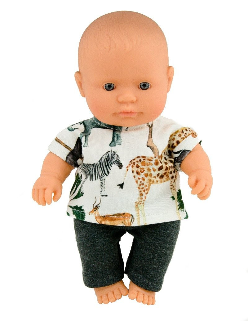 W zestawie bluzeczka z motywem safari oraz legginsy w kolorze grafitowym,