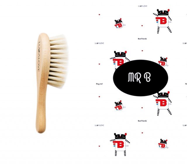 Szczotka dla niemowląt i małych dzieci, wykonana z miękkiego włosia koziego idealnego dla delikatnej i wrażliwej skóry maluszka. W zestaiwe muślinowa myjka w różnych wzorach - wybierz ulubiony.