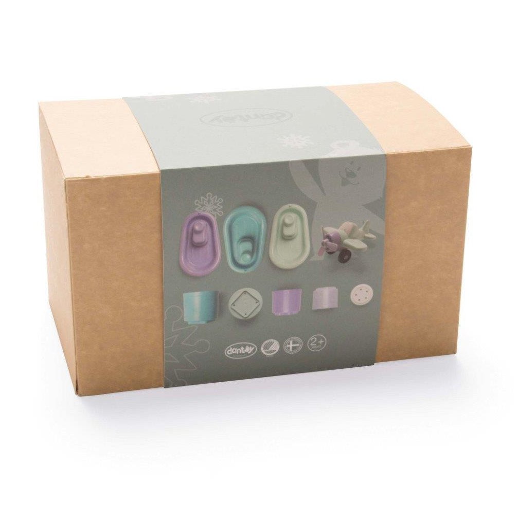 Zestaw zawiera: 3 łódeczki unoszące się na wodzie, uroczy mały samolot, 5 klocków do budowania wieży i przelewania wody.
