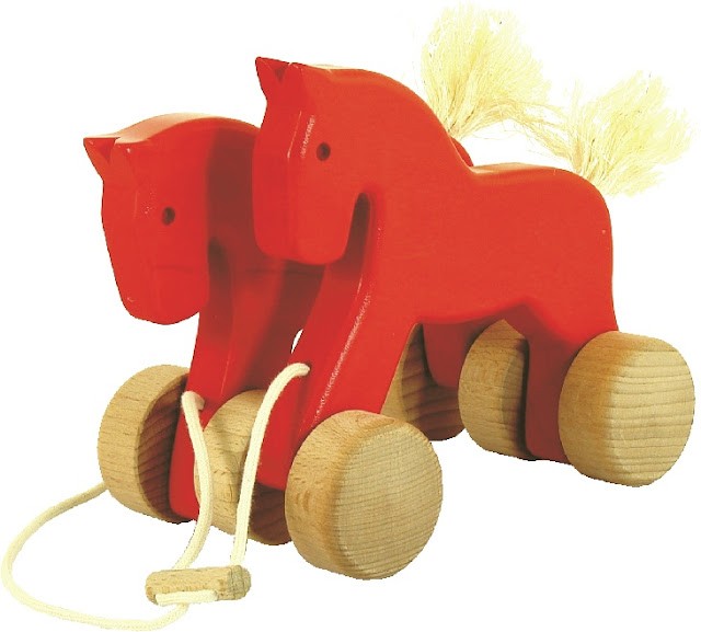 Idealna zabawka do zabrania na spacer dla dziecka, które już samo chodzi. Przy pociąganiu za sznureczek koniki bujają się na zmianę. Rekomendowane dla dzieci od 18 miesiąca. Wyprodukowane w Polsce.