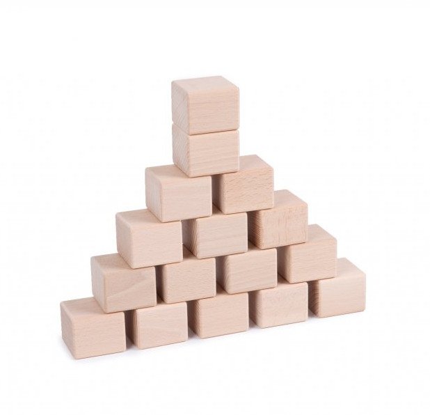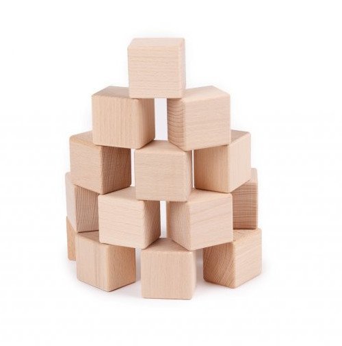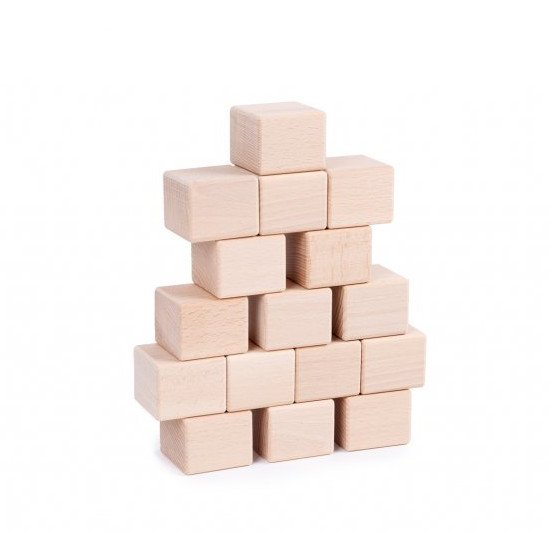 Zestaw 16-tu klocków wykonanych z drewna bukowego. Ze względu na duży rozmiar klocki mogą być używane już przez maluszki, są łatwe do chwytania, zaokrąglone na krawędziach i idealnie gładkie. Do produkcji użyto sprawdzonego drewna, klocki nie są malowane zatem maluch może do woli testować również jak smakują!