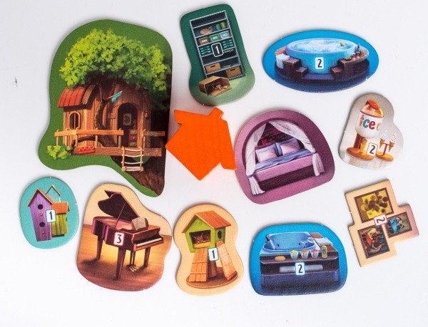 - znacznik pierwszego gracza w kształcie miniaturowego domku