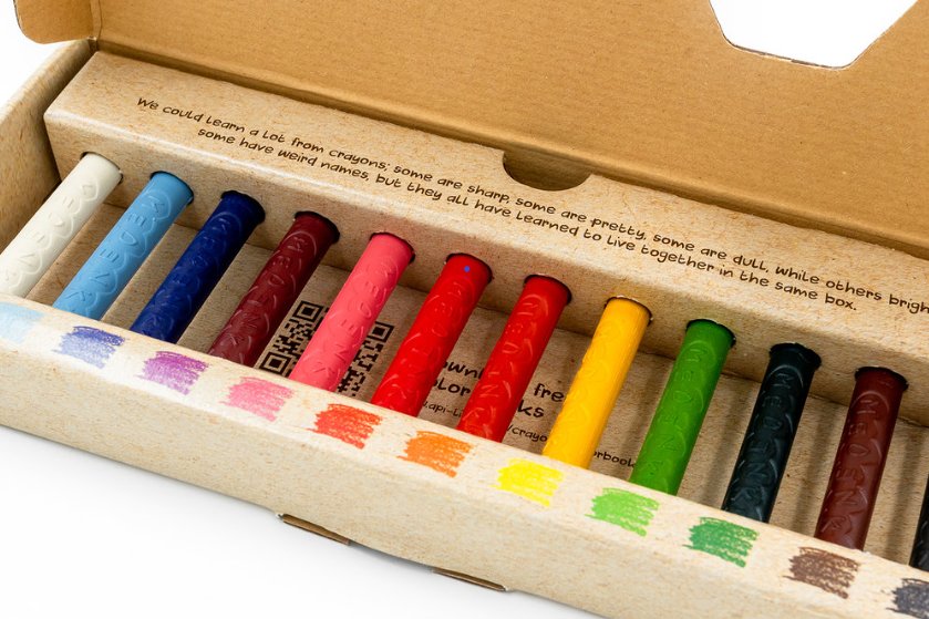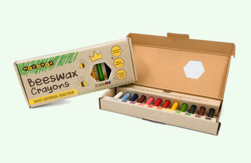 Kredki Medenka Classic w całości wykonane z naturalnych składników. Całkowicie bezpieczne w kontakcie ze skórą. Kredki mają przyjemny, naturalny zapach oraz klasyczny kształt (9x1 cm).