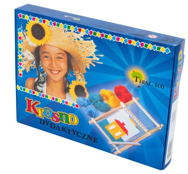 - Drewniane krosno, za pomocą którego dziecko może samodzielnie stworzyć własną tkaninę.